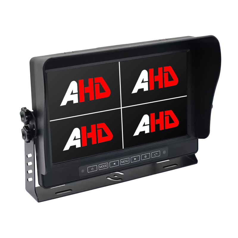 एआय ब्लाइंड स्पॉट डिटेक्शन रिअर व्ह्यू कॅमेरा अंगभूत साउंड आणि लाइट अलार्मकारलेडर10.1 इंच IP69K वॉटरप्रूफ 4CH AHD इनपुट क्वाड डिस्प्ले टच बटणे वाहन मॉनिटरॲल्युमिनियम मिश्र धातु गृहनिर्माण, IP69K वॉटरप्रूफ आणि टच बटणे डिझाइनसह बनविलेले मॉनिटर कठोर वातावरणात चांगले ऑपरेट करणे सुनिश्चित करू शकते. 16:9 गुणोत्तर आणि 1024 x 600 रिझोल्यूशन, वाहनाच्या आजूबाजूच्या वातावरणाचे स्पष्ट दृश्य देते. ट्रिगर वायरसह 4CH AHD सिग्नल इनपुट, CVBS / AHD 720P / AHD 1080P कॅमेरे, NTSC / PAL ऑटो स्विचसह सुसंगत AHD इनपुट.