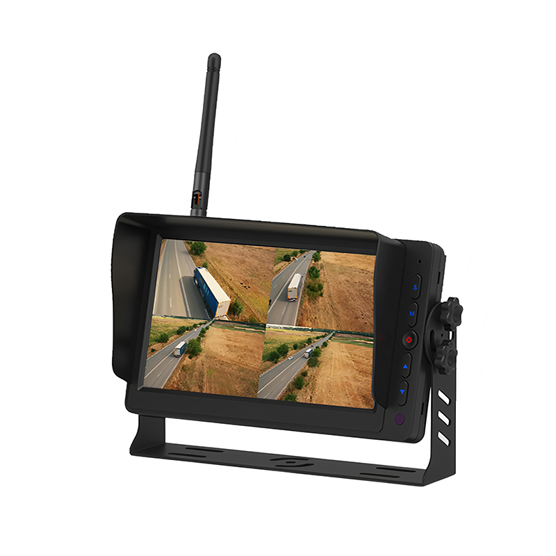 एआय ब्लाइंड स्पॉट डिटेक्शन रिअर व्ह्यू कॅमेरा अंगभूत साउंड आणि लाइट अलार्मकारलेडर7 इंच 2.4GHz डिजिटल वायरलेस 4CH कॅमेरे आणि मॉनिटर सिस्टमबस, ट्रक, ट्रेलर आणि क्रेनसह व्यावसायिक वाहनांसाठी डिझाइन केलेली एक अत्याधुनिक वायरलेस मॉनिटर आणि कॅमेरा प्रणाली आहे. 4CH 2.4GHz वायरलेस कॅमेरासह सुसज्ज, वापरकर्त्याला वायरिंगची गरज नसताना तुमच्या वाहनाच्या आजूबाजूच्या वातावरणाचे 4 वेगवेगळ्या दिशेने निरीक्षण करण्याची परवानगी द्या. उच्च-रिझोल्यूशन इमेजिंग, मजबूत टिकाऊपणा आणि बहुमुखी कनेक्टिव्हिटी एकत्रित करून, ही प्रणाली मागणी असलेल्या वातावरणात वर्धित सुरक्षा आणि दृश्यमानता सुनिश्चित करते.