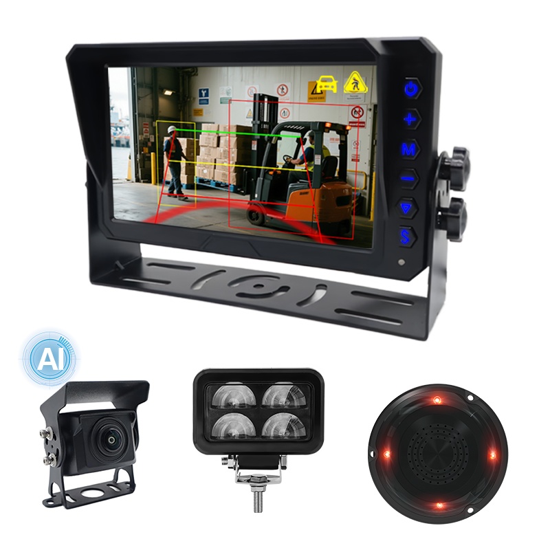 एआय ब्लाइंड स्पॉट डिटेक्शन रिअर व्ह्यू कॅमेरा अंगभूत साउंड आणि लाइट अलार्मकारलेडर फोर्कलिफ्टसाठी एआय पादचारी आणि वाहन शोध लेझर लाइट वॉर्निंग कॅमेरा सिस्टम, फोर्कलिफ्टसाठी एआय बीएसडी कॅमेरा सिस्टम काम करते, यू-आकार लेसर चेतावणी प्रकाश आणि ध्वनी आणि प्रकाश अलार्मसह सुसज्ज आहे, जे पादचारी आणि वाहनाच्या आसपासच्या पादचारी आणि वाहनांना चेतावणी देण्यासाठी अधिक चांगले कार्यप्रदर्शन करण्यास अनुमती देते. ही प्रणाली एआय ब्लाइंड स्पॉट डिटेक्शन फंक्शनला सपोर्ट करते, पादचारी आणि वाहन शोधू शकते. डिटेक्शन झोन, पादचारी शोधणे चालू/बंद, वाहन शोधणे चालू/बंद, इत्यादी समायोजित करण्यासाठी अंगभूत AI कॅलिब्रेशन मेनू. फोर्कलिफ्ट ऑपरेशन सुरक्षितता वाढविण्यासाठी एक प्रगत उपाय.