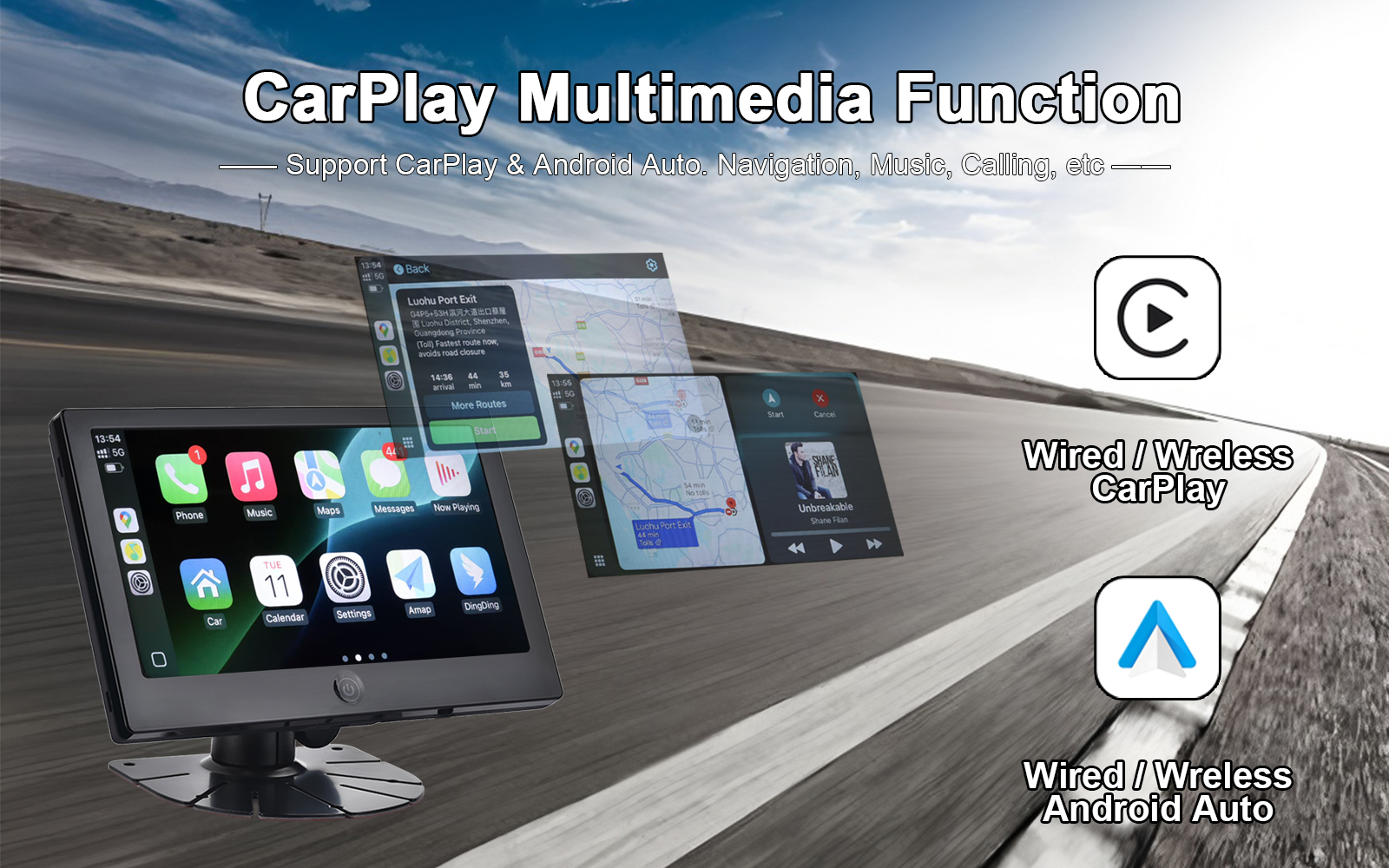 ड्युअल कनेक्टिव्हिटी - अखंड स्मार्टफोन एकत्रीकरणासाठी वायर्ड आणि वायरलेस कनेक्शन पर्यायांसह, CarPlay आणि Android Auto या दोन्हींना सपोर्ट करते.