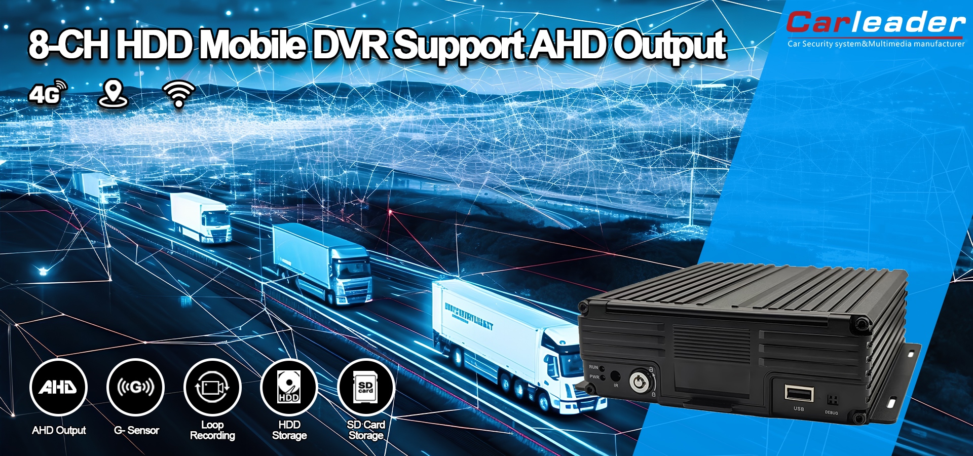 कारलेडर8CH 1080P HDD मोबाइल DVR सपोर्ट AHD आउटपुट आदर्श फ्लीट व्यवस्थापन आणि ट्रॅकिंग, सार्वजनिक वाहतूक सुरक्षा, कायद्याची अंमलबजावणी आणि आपत्कालीन वाहने, लॉजिस्टिक आणि मालवाहतूक, खाजगी आणि व्यावसायिक वाहनांच्या सुरक्षिततेसाठी
