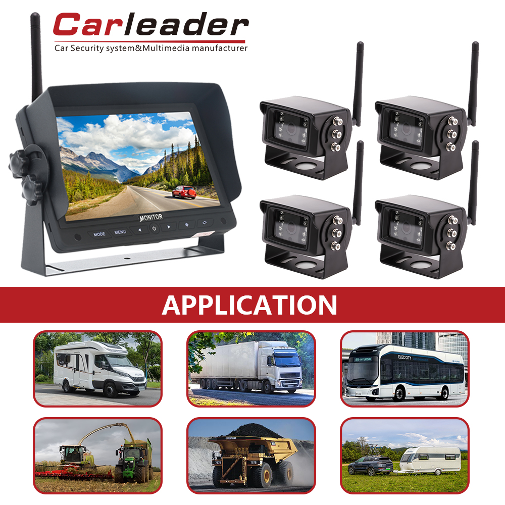 अष्टपैलुत्व: Carleader 7 Inch 2.4G Digital Wireless 2CH स्प्लिट डिस्प्ले कॅमेरा सिस्टीम RVs, बसेस, ट्रक्स, ट्रेलर इत्यादींसह विविध वाहनांवर वापरली जाऊ शकते.