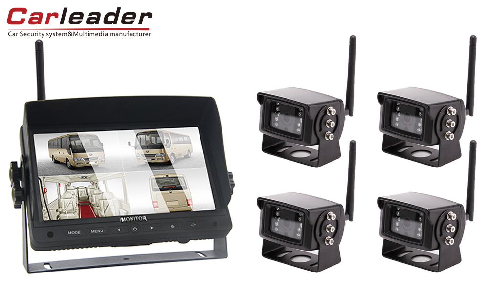 कारलेडर7 इंच 2.4G डिजिटल वायरलेस 2CH स्प्लिट डिस्प्ले कॅमेरा सिस्टम, सपोर्ट 2 स्लिप डिस्प्ले व्ह्यू, 2pcs वायरलेस कॅमेरासह पॅरिंगसह उच्च कार्यक्षमता वायरलेस मॉनिटरिंग सिस्टम. 7 इंच डिजिटल पॅनेल, 16 : 9 इमेज रेशो, 1024 x 600 (RGB) रिझोल्यूशन, ड्रायव्हिंग अनुभवामध्ये ड्रायव्हरला उच्च स्पष्टता प्रदान करते.