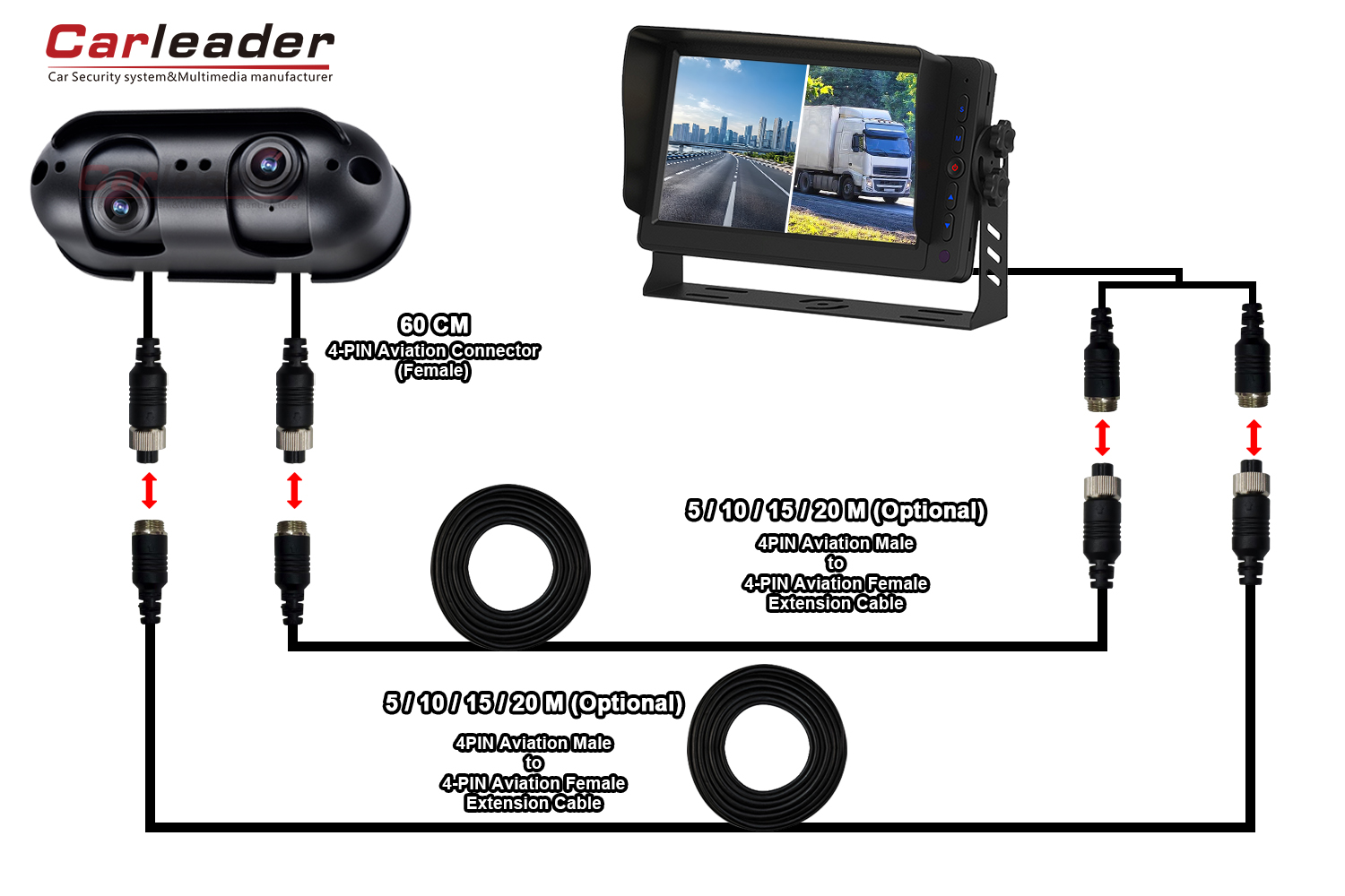 1. पर्यायासाठी CVBS/AHD 720P/AHD 1080P रिझोल्यूशनसह स्टारलाईट AHD ड्युअल लेन्स हेवी ड्युटी रिव्हर्सिंग कॅमेरा.